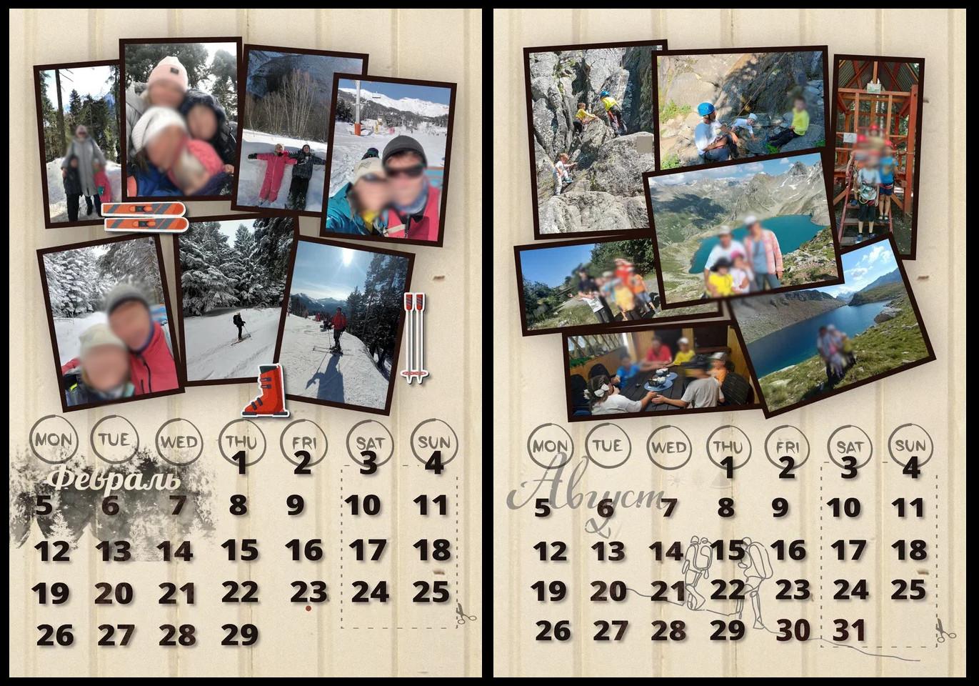 макет календаря с семейными фотографиями
